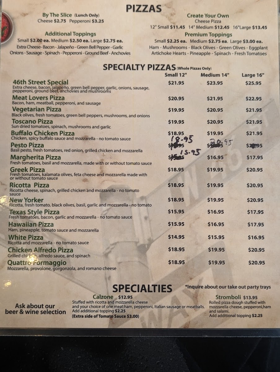 46th st. New York Style Pizzeria Menu (2025 Update)